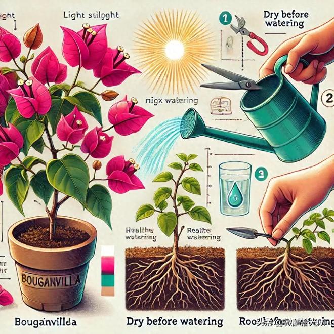 不少人觉得三角梅是热带植物,应该多浇水。但现实是,水浇多了,花苞没长出来,根先给你烂了!三角梅是非常耐旱的植物,水多了只会让它徒长枝叶不开花。