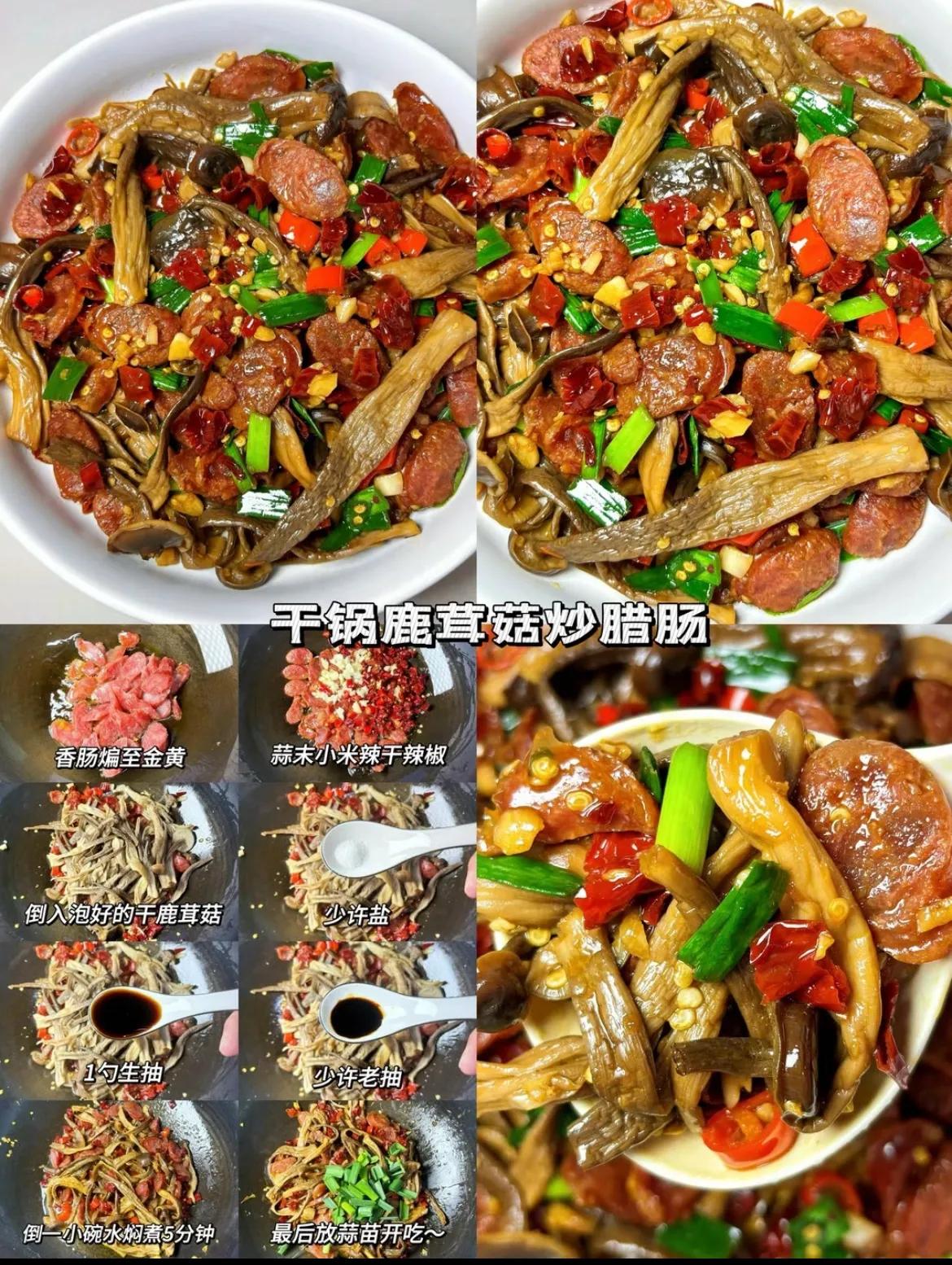 干锅鹿茸菇炒腊肠