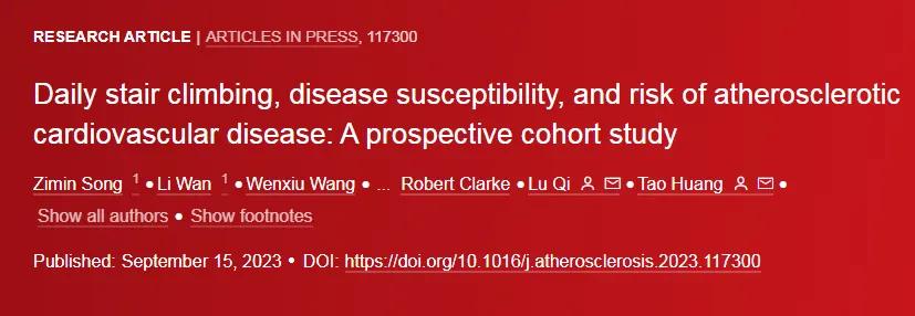 ⑥Daily stair climbing, disease susceptibility, and risk of atherosclerotic cardiovascular disease: A prospective cohort study. Atherosclerosis. 2023 Dec;386:117300.