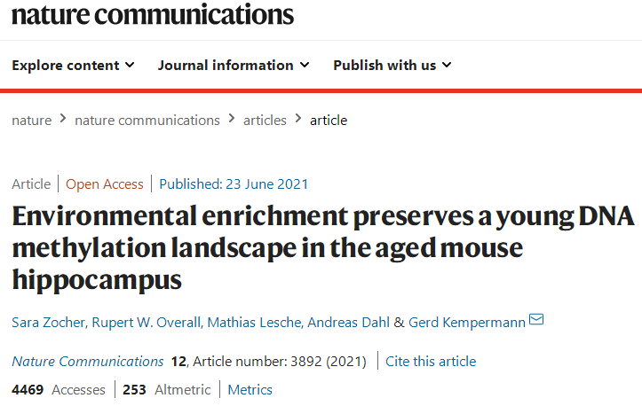 近期一项发表在Nature子刊的研究也显示,高刺激的环境能恢复大脑海马中与年龄相关的DNA甲基化变化,令大脑海马体保持年轻,从而改善记忆力。